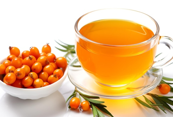 Чай с облепихой — это яркий, ароматный напиток с насыщенным янтарно‑оранжевым оттенком. Его вкус — гармоничное сочетание кислинки облепихи и тёплой сладости (мёда или сахара).